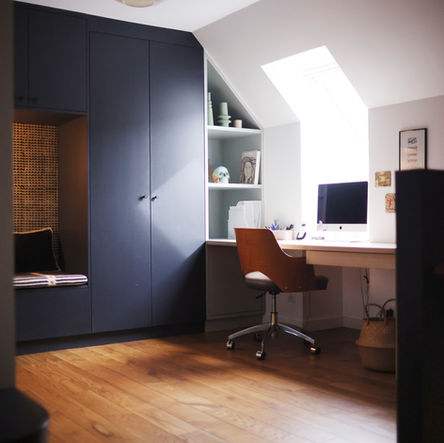 L'étage a aussi été revisité : un bureau dans les mêmes tons que le salon, et les 3 chambres de leurs filles.